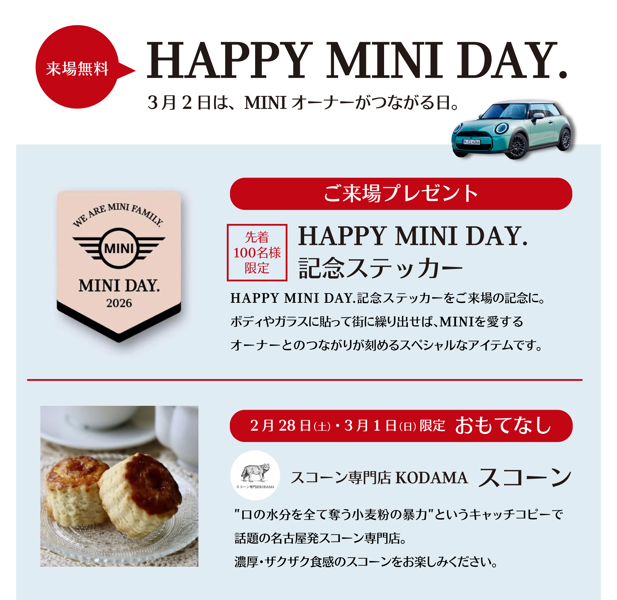 3月2日のMINIの日に合わせてHAPPY MINI DAY.を開催します。