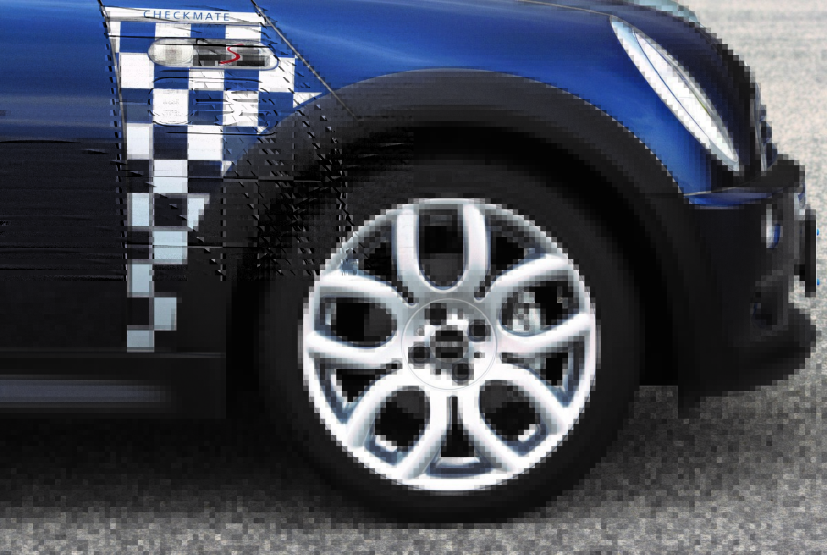 2005年10月にデビューした3つの特別モデル(ミニセブン、ミニパークレーン、ミニチェックメイト)のうち、最もスポーティなモデルがこの「ミニチェックメイト(MINI Checkmate)」だ。また3モデルの中でも特に人気のあったモデルとして、現在でも中古車価格はやや高めに設定されていることが多い。