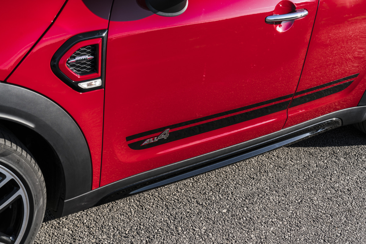 8速オートマチック・トランスミッション、そして、John Cooper Works専用チューニングが施されたスポーツ・サスペンション、さらに、コーナリング時のトラクションとハンドリング性能を向上させるエレクトロニック・ディファレンシャル・ロック・コントロール(EDLC)、パフォーマンス・コントロールを備えたダイナミック・スタビリティ・コントロール(DSC)を標準装備し、MINI独自の4輪駆動システムALL4(オールフォー)も採用することにより、ドライビング・パフォーマンスを最高レベルに高めている。