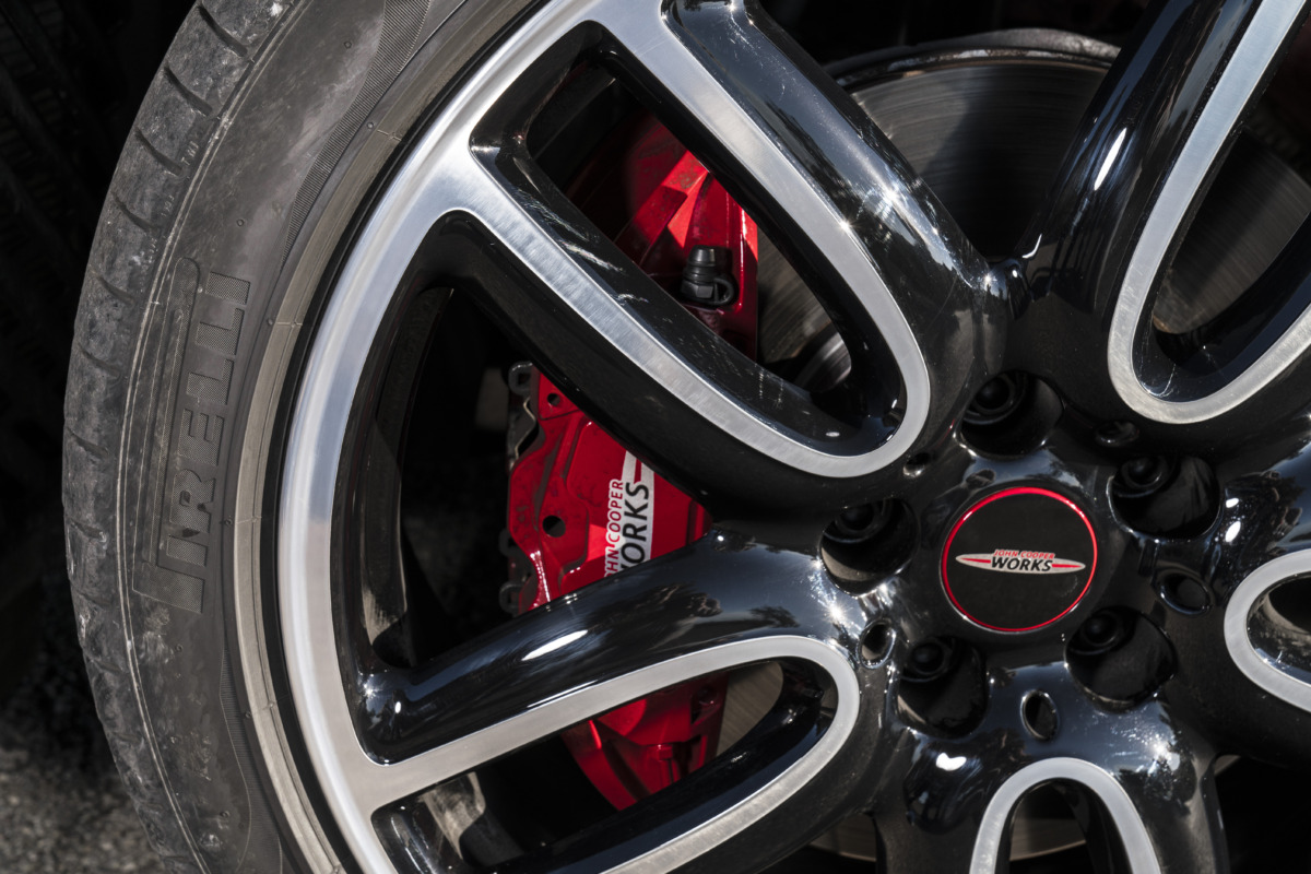 エクステリア・デザインは、John Cooper Works専用デザインのエアロダイナミック・キットを標準装備し、Brembo社製の赤く塗装された4ピストン・ブレーキ・キャリパーとサイド・スカットルにはJohn Cooper Worksのロゴが刻印されている。また、ホイールはJohn Cooper Works専用デザインである18インチ・アロイ・ホイールが標準で装備される。