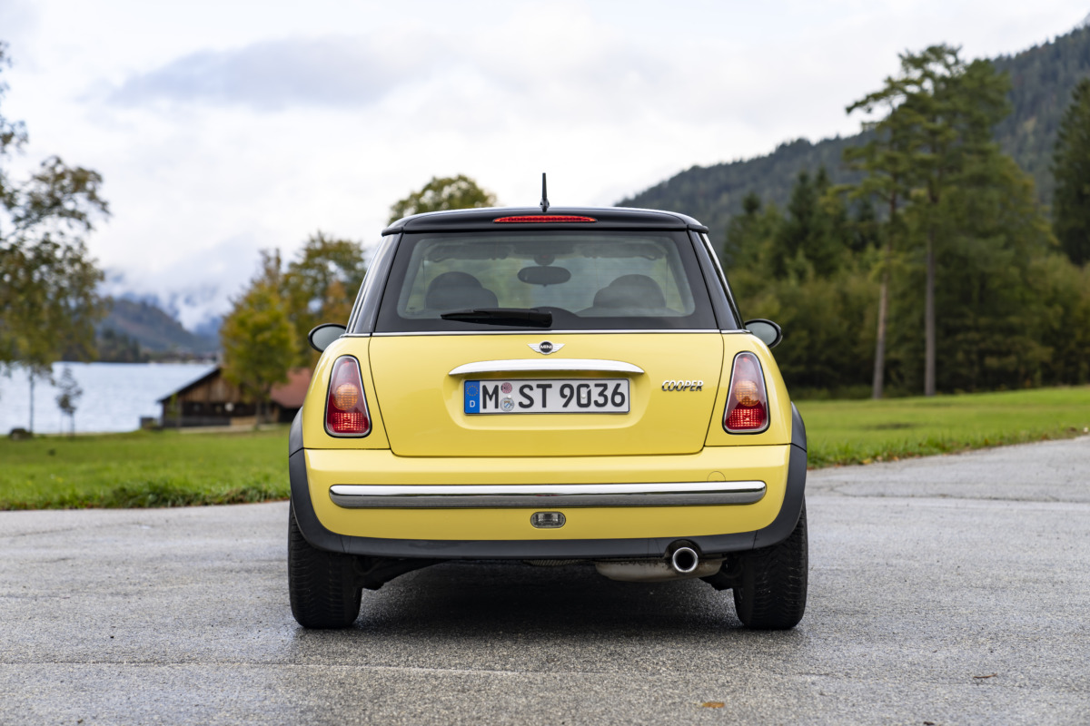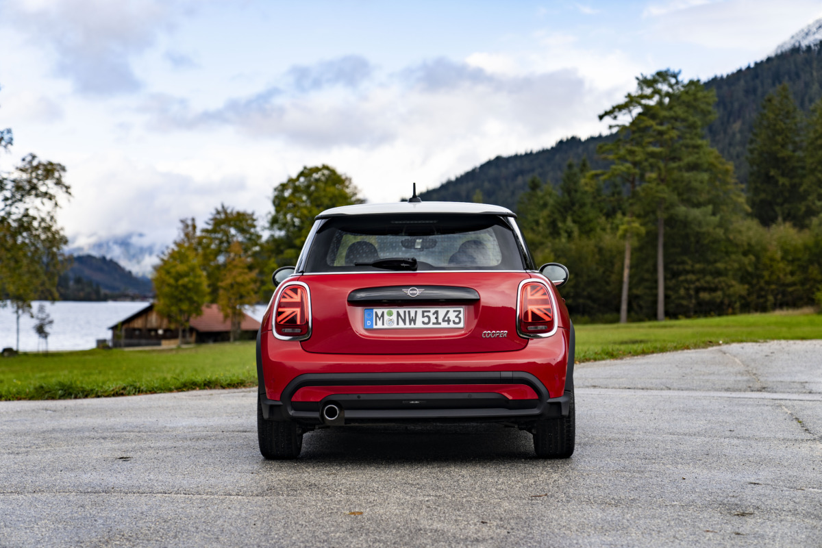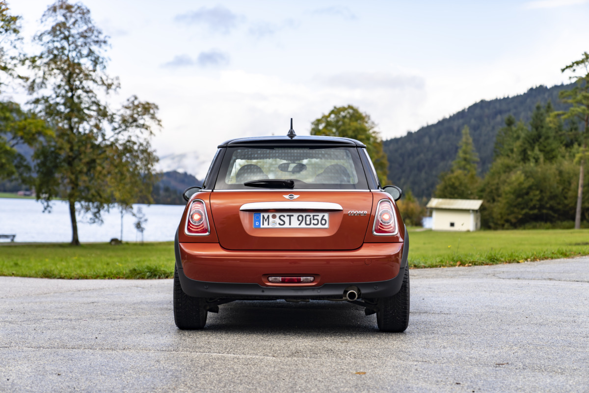 リアビューのデザインを見ると、クラシックミニから受け継がれてきたデザインの1つが見られます。縦型のテールライトがそれですね。クラシックミニのリアバンパー形状も第1世代ミニ3ドア(R50、R53)までは受け継がれ、第2世代では失われ、第3世代で現代風に解釈された形状で復活しています。