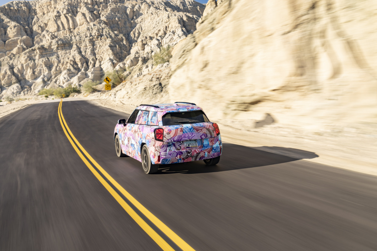 このボディサイズを同カテゴリのミニクロスオーバーと比較すると全長で26.5cm減、全幅17cm増、全高は5mm減となっています。全長だけを見るとミニ5ドアとほぼ同じサイズになりますが、全幅がほぼ2mとトヨタ ランドクルーザー並みの数値で、これまでのMINIの中では最大サイズとなります。市販モデルでも、この全幅で販売されるとしたら買い手がかなり限られてしまいそうです。