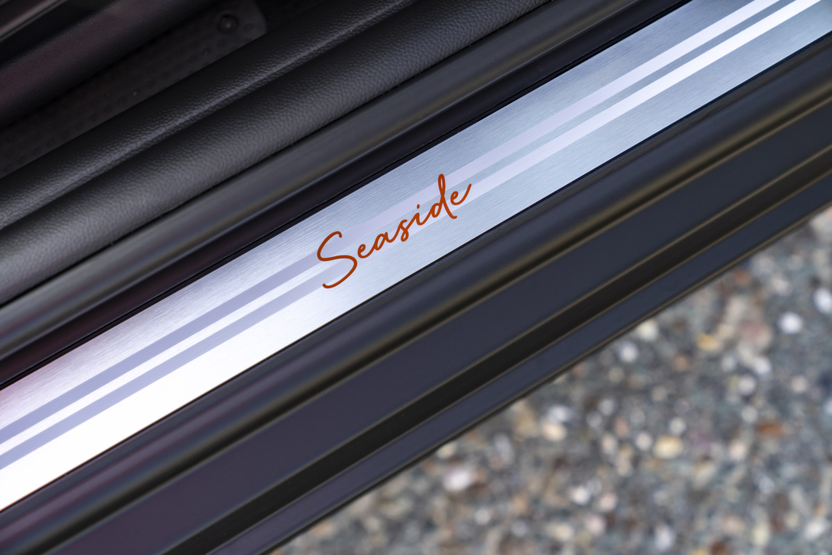 限定車 MINI Convertible Seaside Edition は、MINI Cooper S Convertible(クーパー・エス・コンバーチブル)をベースに、専用ボディ・カラーのカリビアン・アクアを採用、ホワイトの加飾を随所に施すことで、南の海を彷彿とさせるモデルに仕上がっています。また、MINI Convertible 誕生 30 周年を記念し、「30」をモチーフとしたグラフィックや Seaside のレタリングなどのアニバーサリー・デザインが採用されました、180台限定の大変希少性の高いモデルとなります。