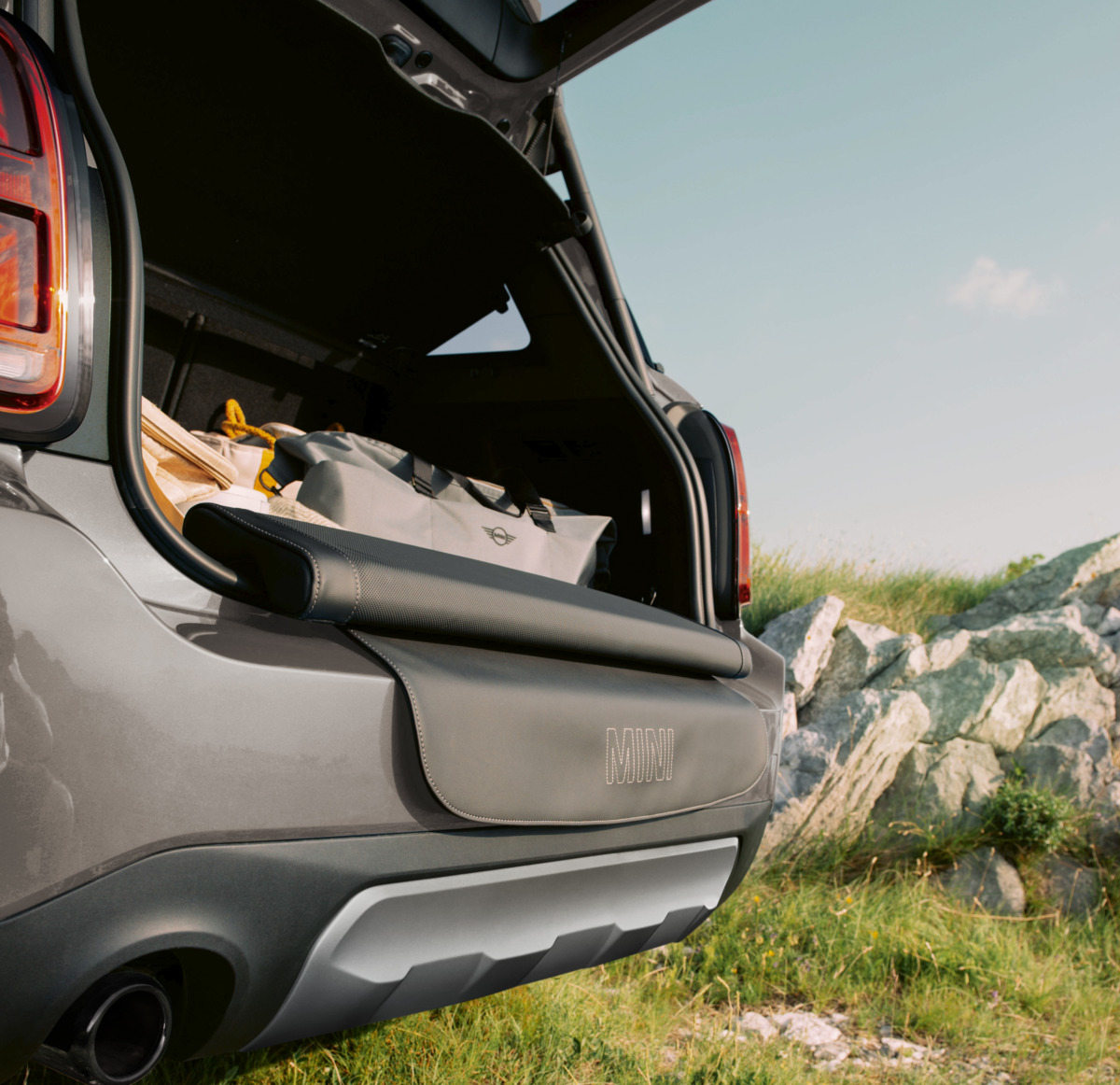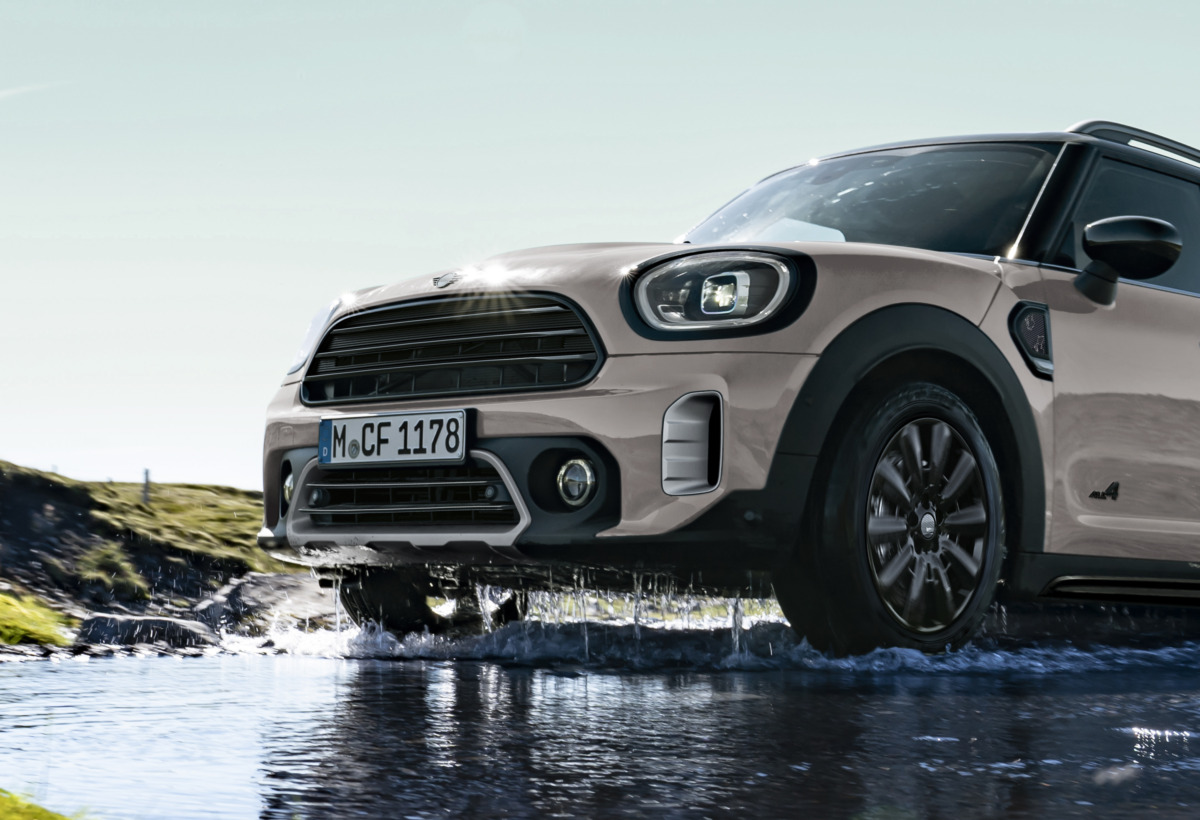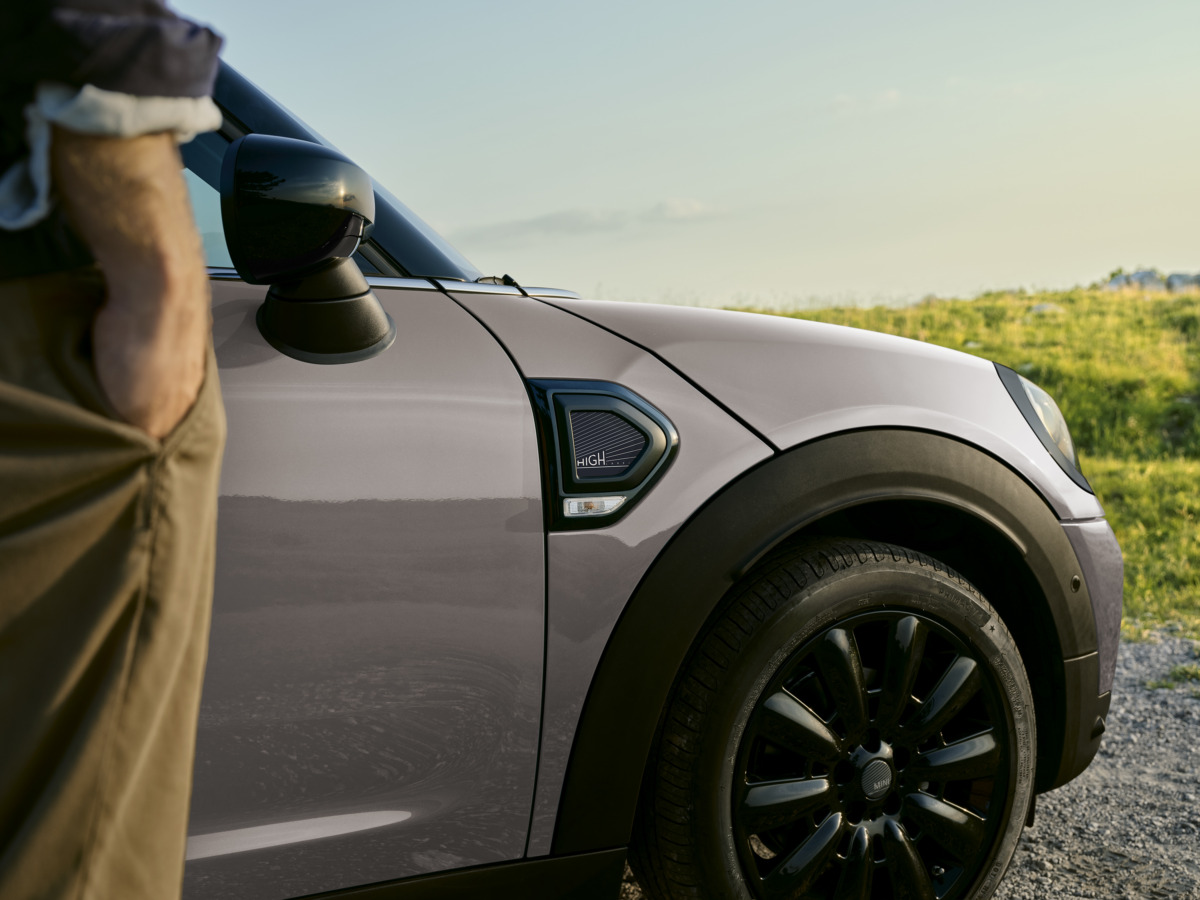 MINI Crossover Highlands Editionのエクステリアは、アースカラーとして人気の高い外装色「ルーフ・トップ・グレー」を特別装備しています。また、フロントおよびリアのバンパー部分にマット・シルバーの加飾が施される MINI ALL4 エクステリアが装備され、SUV らしい力強くダイナミックなエクステリアを実現しています。