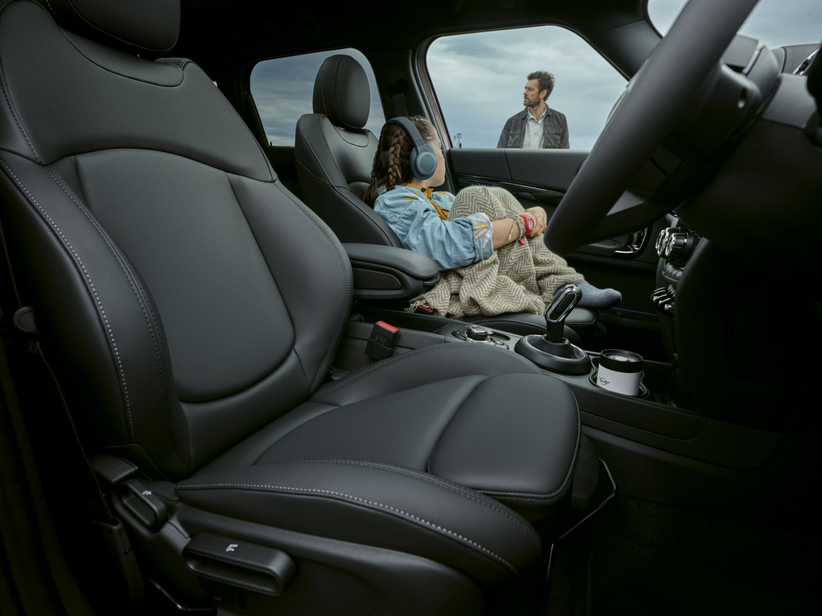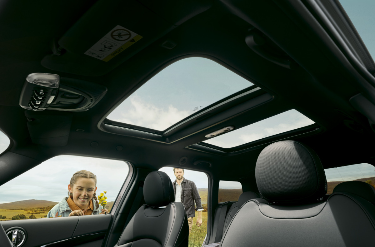 電動パノラマ・ガラス・サンルーフや、ラゲッジ・スペースから簡単に引き出して使うことができる二人掛けのクッション付きシート MINI ピクニック・ベンチが装備され、アウトドア・アクティビティを満喫できる仕様となっています。シートにはレザレット・カーボン・ブラック、ステアリングにはナッパ・レザー・ステアリング・ホイールを採用し、内装内張りはアンスラサイトとする事で、スポーティな室内空間を実現しています。ドア・シルにはエクステリアと同様に Highlands Edition 専用デザインを用い、エクステリアとの一体感を持たせています。