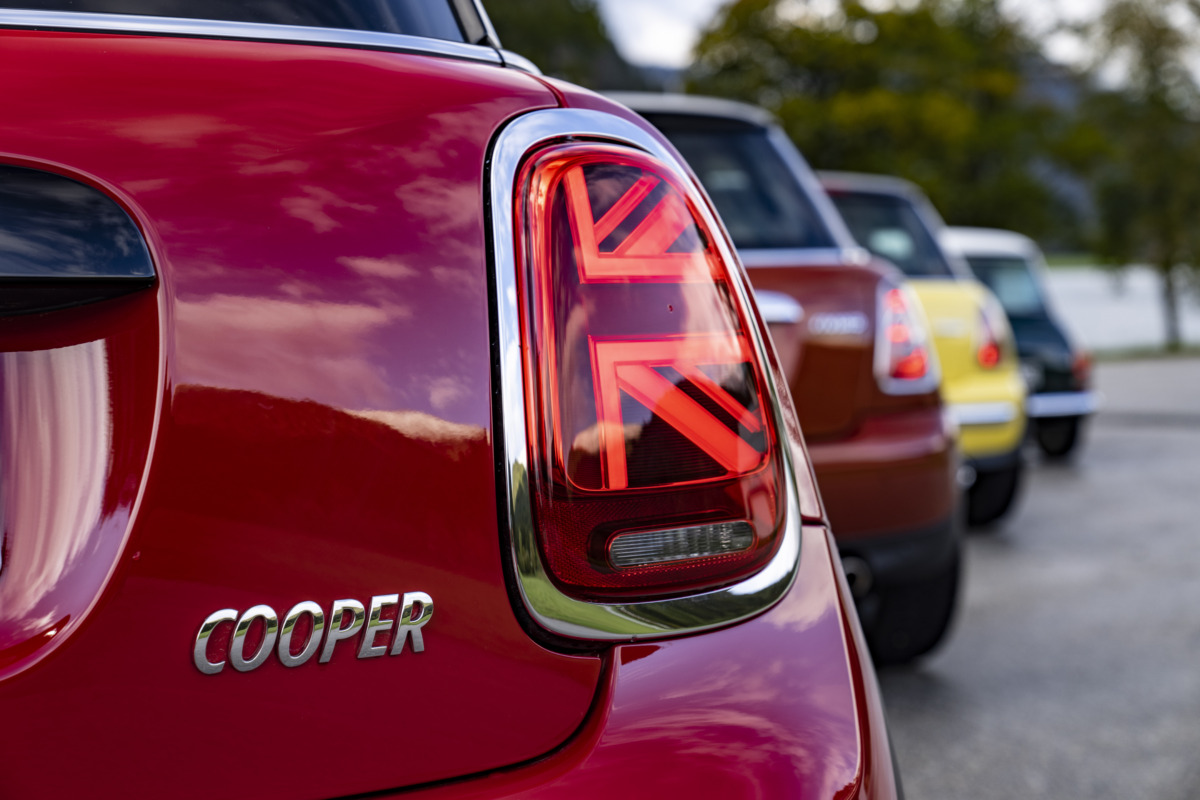 第1世代、第2世代ミニのテールライトの幅の細さは、クラシックミニになるべく寄せようとしているのがわかります。第3世代からはテールライトの幅が広がり、視認性が上がりました。また、第3世代中期以降はユニオンジャック柄のテールライトが採用されました。