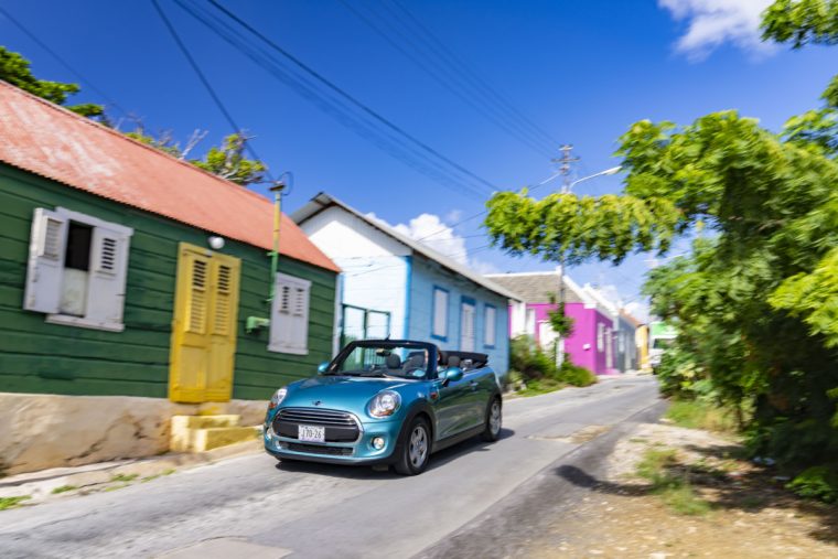 カリブ海のキュラソー島で撮影された、カリビアンブルーのミニコンバーチブルが素敵! 2022.05.17 -